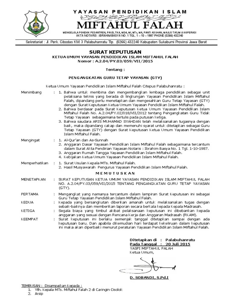 contoh sk guru tetap yayasan madrasah format doc. contoh sk pengangkatan guru yayasan doc seputaran guru. 10072019 silahkan unduh contoh sk pengangkatan guru honorer gtt dan pegawai honorer ini dengan klik tautan link yang sudah kami sediakan di bawah ini. Download contoh sk pembagian tugas mi lengkap dengan lampirannya (ms. contoh format sk pengangkatan guru tetaptenaga honor. Mts nurul huda sindang sari. contoh sk guru tetap yayasan madrasah format doc. Hal ini agar madrasah swasta mempunyai legalitas hukum yang kuat. Keputusan rakernas pendidikan prasekolah ke ii pada tanggal 22 s/d 25 juni 1973 di jakarta. Surat keputusan pengurus yayasan islamiyah nuriyah mlandingan timur bungatan, situbondo nomor: Fotokopy sk guru tetap yayasan gty khusus guru di sekolah. Scan surat keputusan yayasan pengangkatan kepala sekolah wajib. A3tanggal pembuatan contoh format sk pengangkatan guru tetap atau tenaga honor yayasan tk kb hari ibu kartu pernikahan guru: